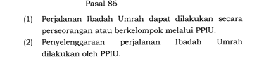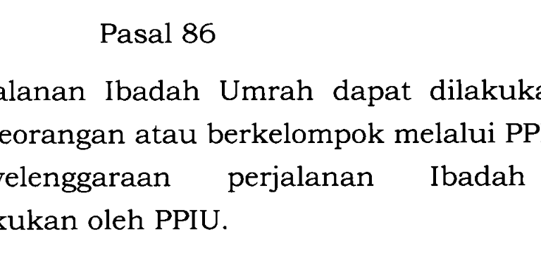 UU No 8 Th 2019 Pasal 86 Tentang Ibadah Umroh secara Perorangan atau Berkelompok